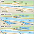 河川整備に伴って連続堤防化が進み、霞堤は徐々に姿を消しているものの、都市郊外の河川にはいまでも数多くみることができる。
