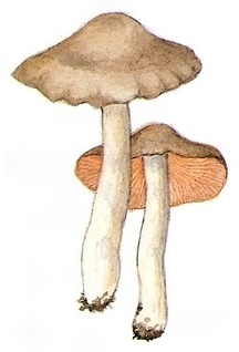 クサウラベニタケ〔標本画〕[百科マルチメディア]