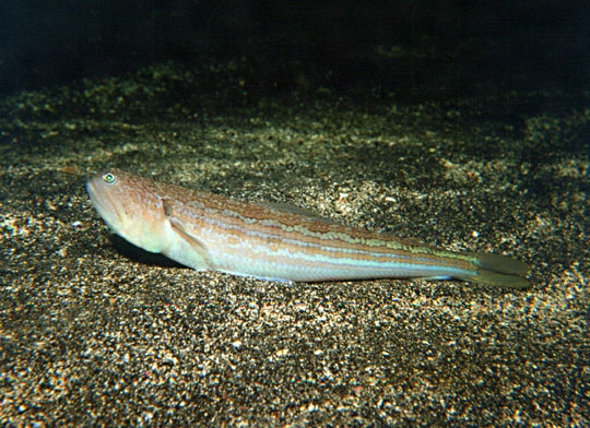 水深100m以浅に生息するが、普通は水深20mの砂底や砂泥底に多くすむ。体側に数列の黄色と緑青色の縦帯が交互に走る