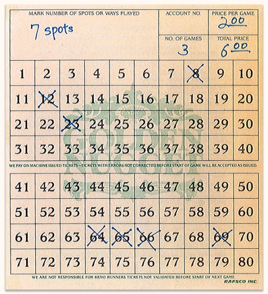 アメリカのネバダ州ラスベガスにあるホテル「ゴールデンナゲット」で、1980年代に実際に使用されたキノ・チケット
