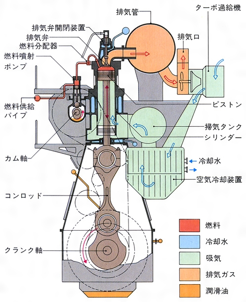 ディーゼルエンジンの構造(2ストローク式低速機関)